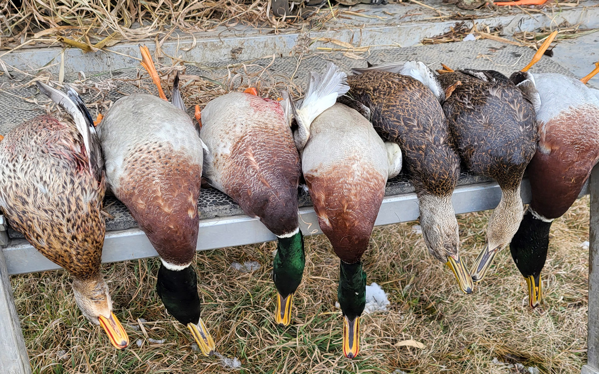 Photo 2 – Quelques mâles malards récoltés à la toute fin de la saison montrant le phénomène d’iridescence.