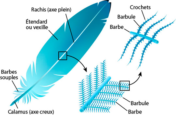 Figure 1 – Anatomie d’une plume d’oiseau montrant la complexité des structures qui la forment.