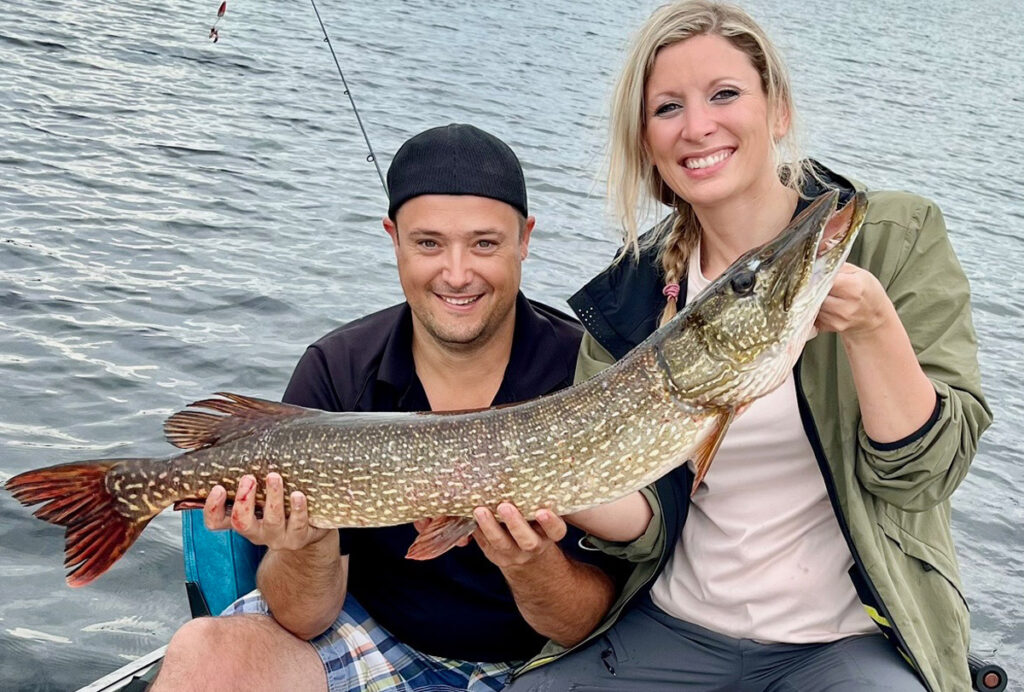 L’auteure et son conjoint avec un grand brochet de belle taille.