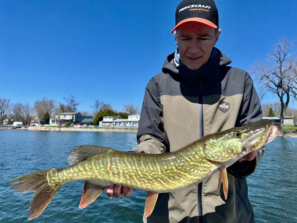 Le réputé pêcheur et animateur de l’émission de télé Passion Plein Air, Raymond Carignan posant avec un brochet trophée!