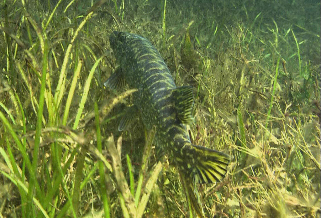 Le brochet aime bien se mettre à l’affût dans la végétation pour guetter ses proies.