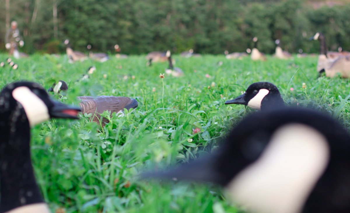 Quand je dois chasser un secteur qui n’attire pas en lui-même les oiseaux, soit qu’il ne s’y trouve pas de nourriture ou encore que différents travaux au champ les aient fait fuir, je sors tous les appelants que je possède, histoire que mon installation soit la plus facilement repérable possible. Il se peut que la distance entre le dortoir et l’endroit ou je chasserai soit importante. En conséquence, j’ai besoin que mon installation soit très facilement visible. Cependant, si vous n’avez pas le budget pour un ensemble d’appelants imposant, vous devrez vous concentrer sur la qualité de vos appels et quelques autres aspects.