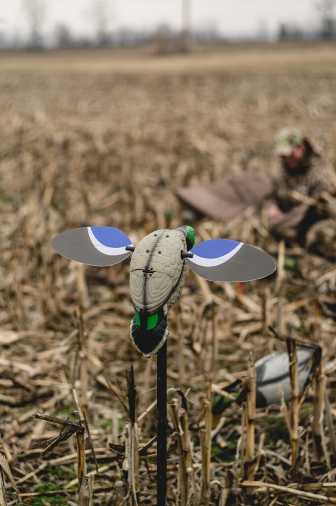 En début de saison, on voit apparaître des appelants mécanisés un peu partout dans les champs et au fleuve et pour cause: ils sont d’une efficacité redoutable. Le problème avec ces appelants mécanisés aux ailes tournoyantes, c’est bien sûr leur prix. Au moment d’écrire ces lignes, il faut débourser environ 250,00$ avec taxes pour un de ces appareils avec télécommande. Vous pouvez donc en acheter un seul ou encore former un groupe de chasse et acheter ensemble un ou plusieurs de ces appelants.