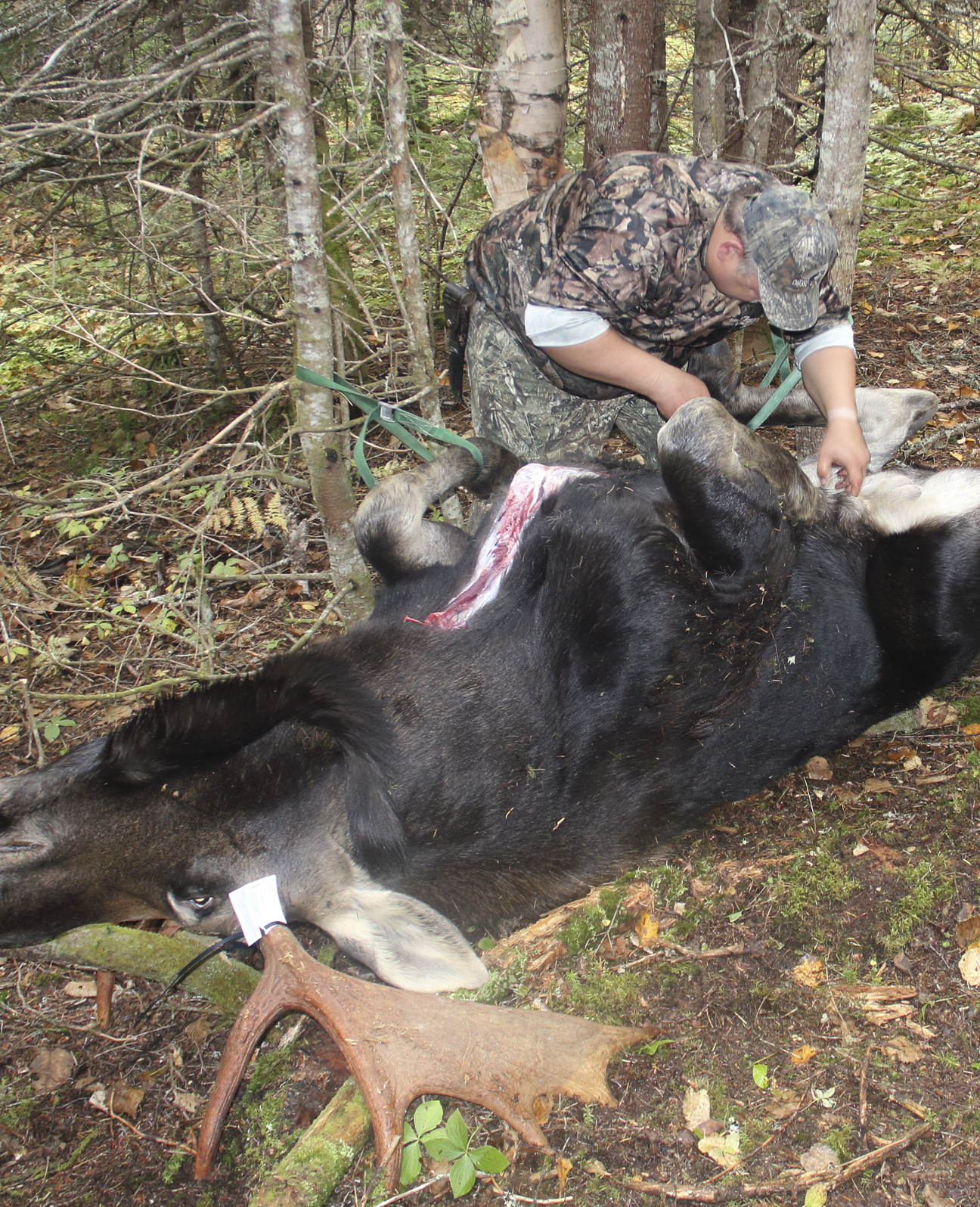Le plaisir est terminé et maintenant c’est le gros travail qui commence. C’est souvent ainsi que l’on définit l’éviscération et les autres tâches connexes après la récolte d’un gros gibier. À la chasse à l’orignal, la plupart des groupes de chasseurs ont un volontaire, souvent désigné, qui va s’acquitter de cette tâche. Lors de l’éviscération, la plus grande hantise des chasseurs est la perforation du système digestif (la panse). Pour un nouveau disciple, la tâche peut sembler très ardue, surtout s’il est seul lors de son premier abattage.