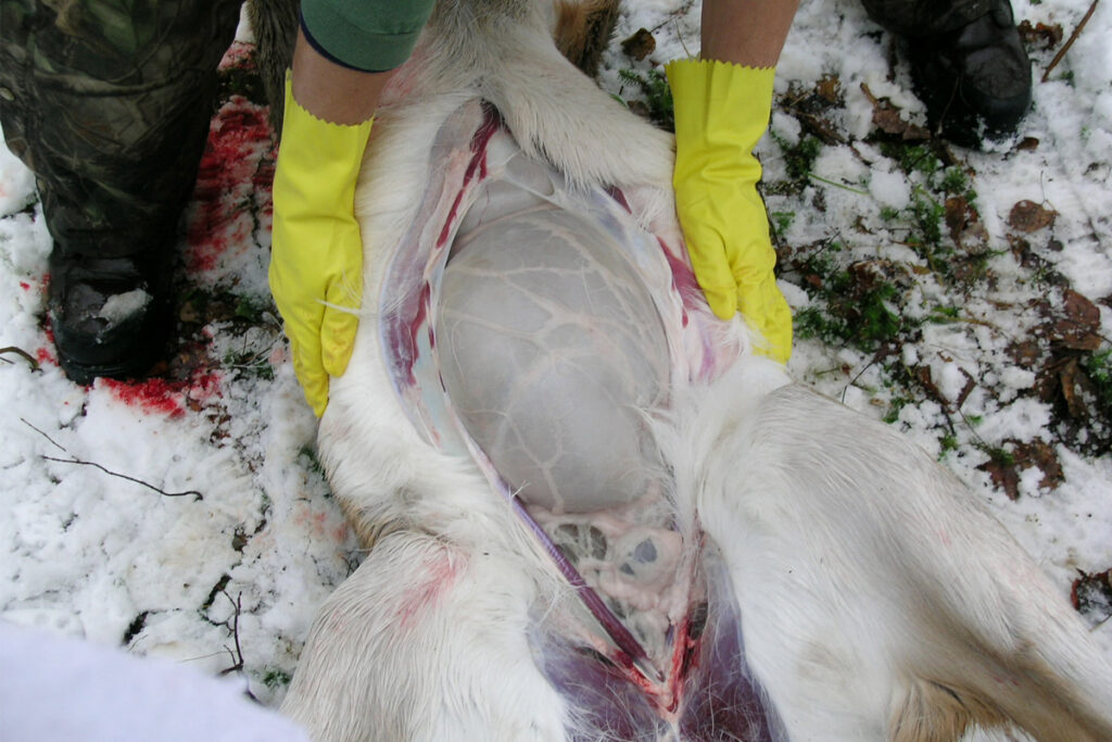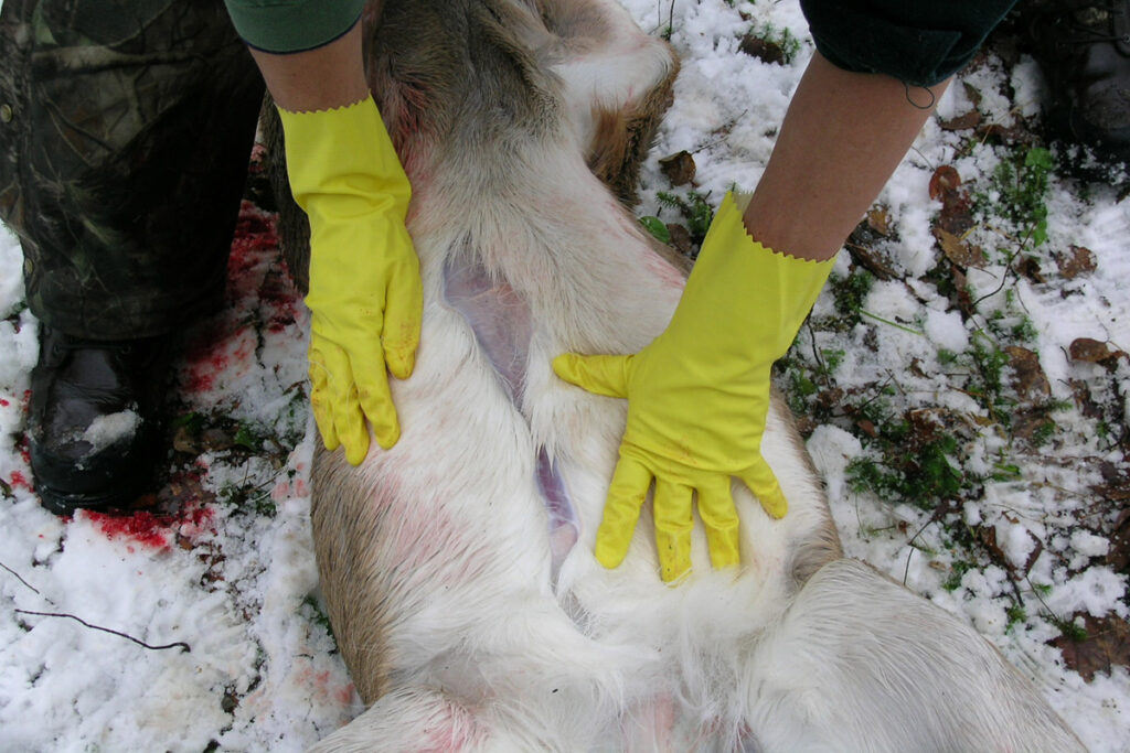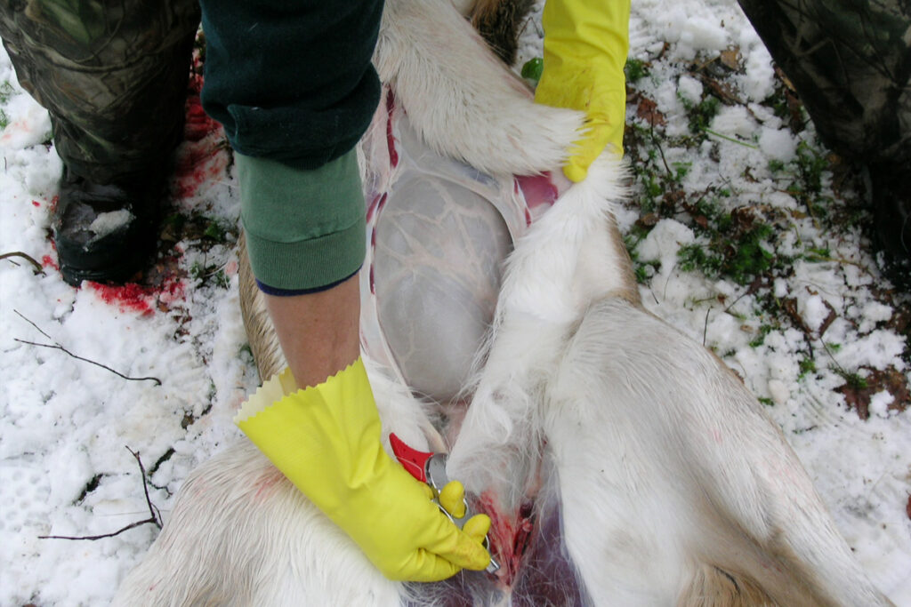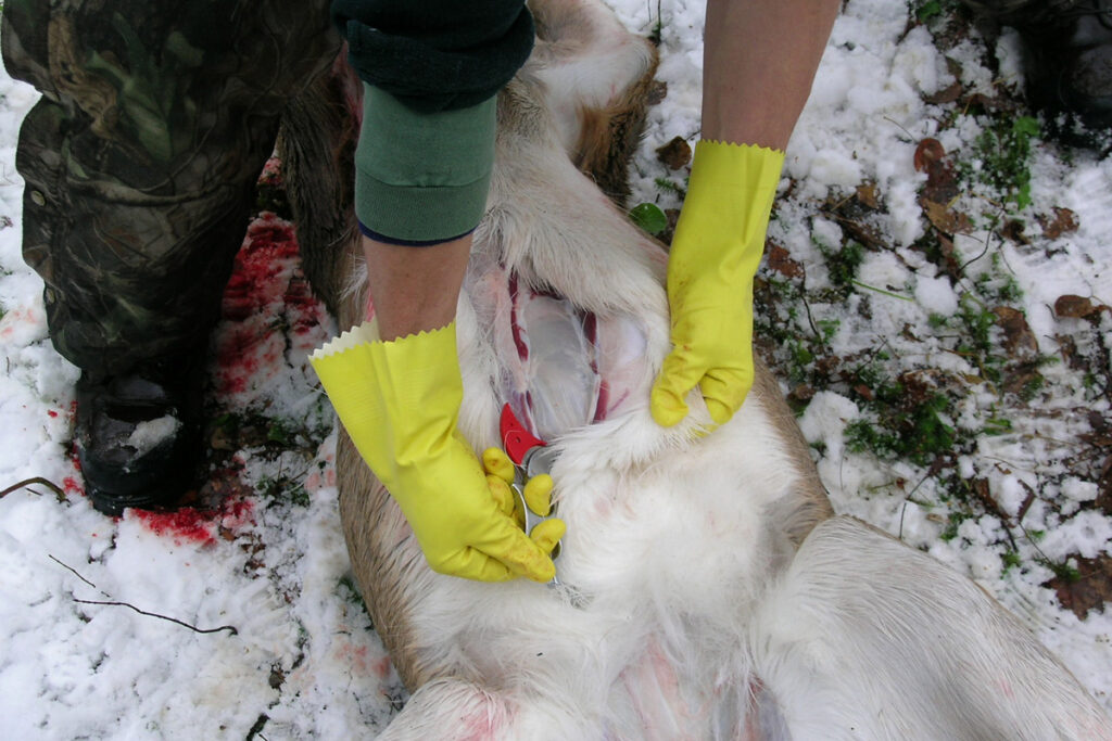 Le plaisir est terminé et maintenant c’est le gros travail qui commence. C’est souvent ainsi que l’on définit l’éviscération et les autres tâches connexes après la récolte d’un gros gibier. À la chasse à l’orignal, la plupart des groupes de chasseurs ont un volontaire, souvent désigné, qui va s’acquitter de cette tâche. Lors de l’éviscération, la plus grande hantise des chasseurs est la perforation du système digestif (la panse). Pour un nouveau disciple, la tâche peut sembler très ardue, surtout s’il est seul lors de son premier abattage.
