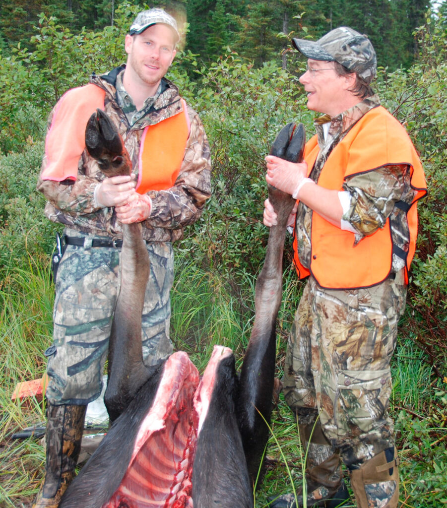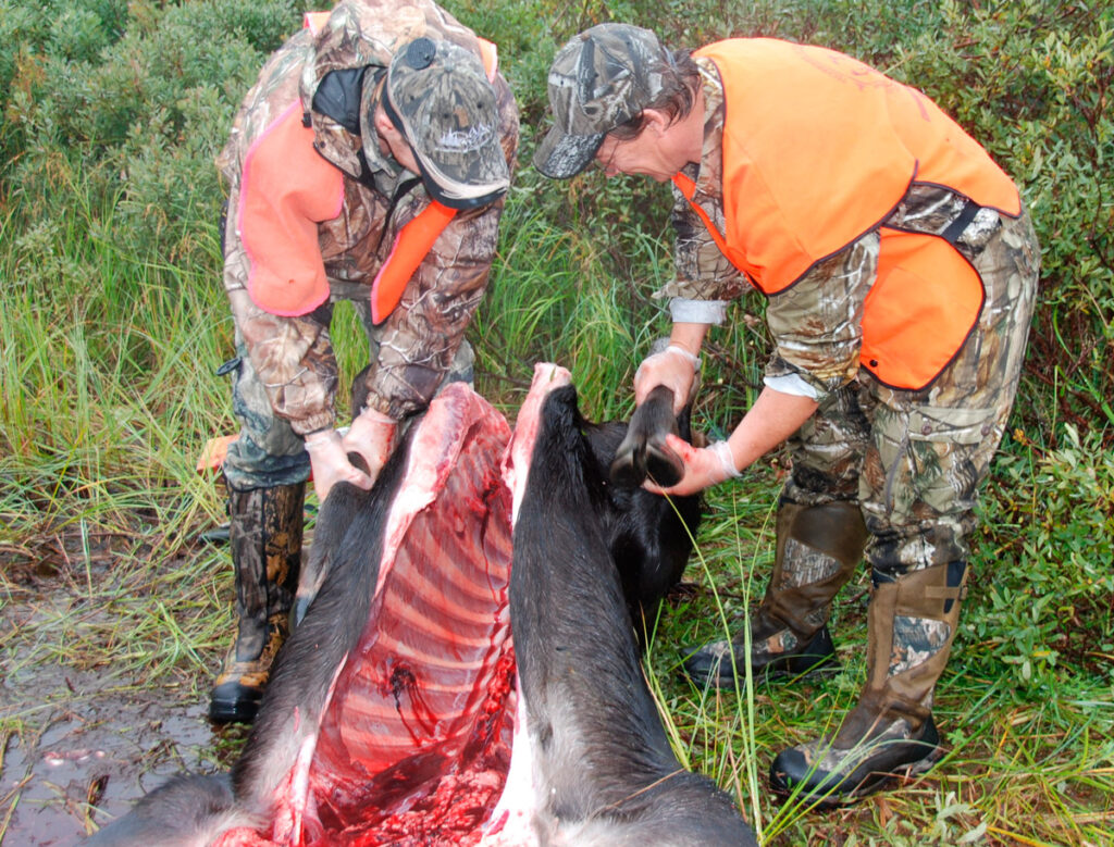 Pour un orignal, avec une équipe de deux chasseurs ou plus, il est plus facile de procéder au pompage. Étirez les pattes en extension complète.