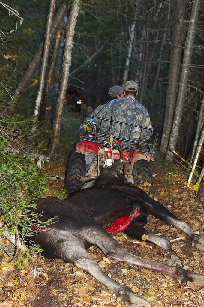 Orignal récolté par l’auteur et son groupe de chasse, en marchant silencieusement dans un sentier situé dans un site nourricier.