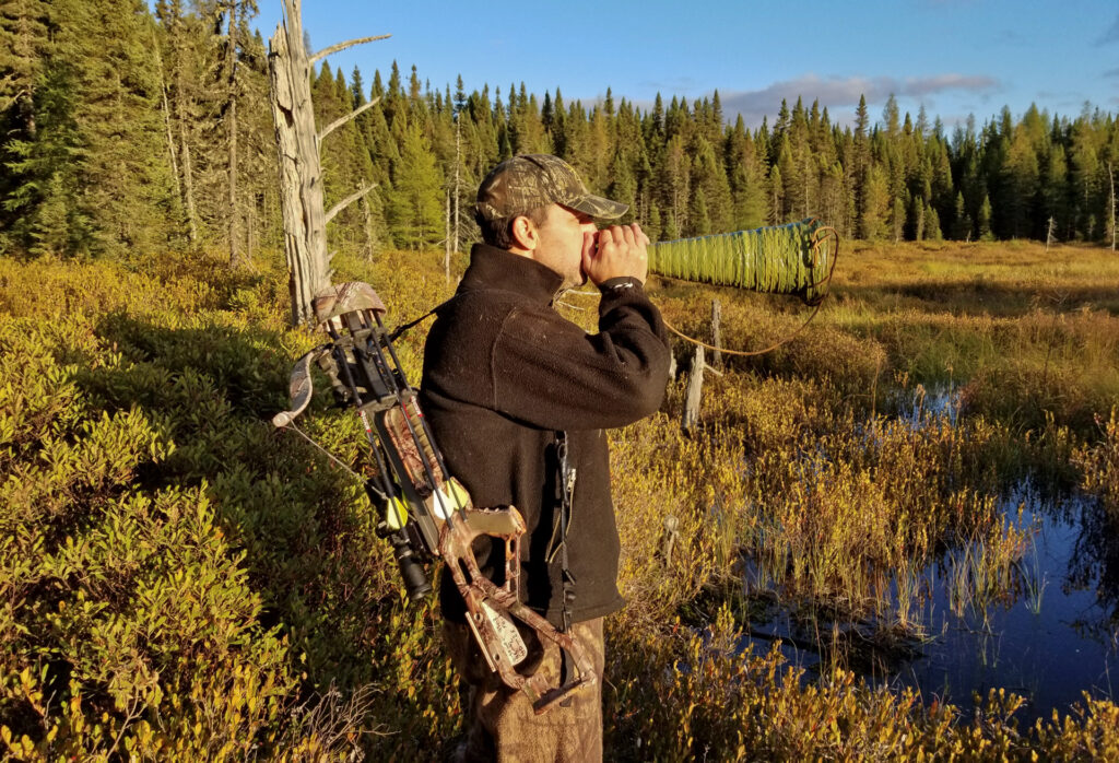 Cependant, en mode de chasse plus statique ou plus immobile dans un endroit dégagé ou bien en formant des embuscades en se cachant, il est à mon avis presqu’obligatoire d’avoir le vent en votre faveur pour augmenter vos probabilités de succès. Je compare en fait souvent cette situation au système de justice, vous êtes innocent jusqu’à preuve du contraire. En appliquant cette notion pour un orignal, vous en êtes un jusqu’à preuve du contraire. Vous n’avez pas à lui prouver que vous êtes un mâle ou une femelle lorsqu’il vous répond, vous vous devez toutefois de ne pas leur prouver le contraire (humain).