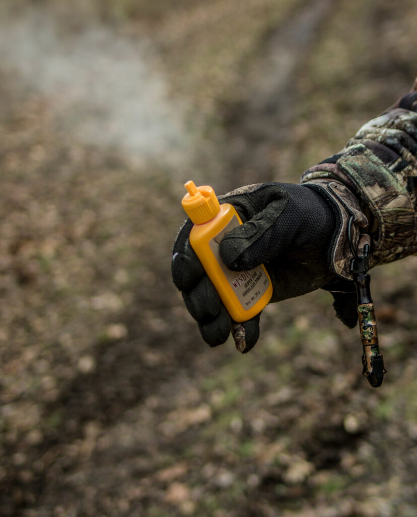 Pour débuter sa chasse l’auteur tente toujours de prévoir son trajet en fonction de la direction des vents. À ce chapitre, les petits contenants de poudre volatile inodore sont bien pratiques.